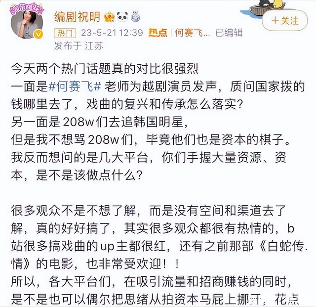 他认为每一个院团长应该善待后生好演员,保护戏曲不仅是喊喊标语这样简便,更需要咱们为这些优秀东说念主才添砖加瓦,如斯年青演员才有出息,戏曲也才有异日。       事发不到24小时,       从《旋风青娥》的编剧到圈内歌手纷繁站出来力挺何赛飞       。中基层演员的笨重,走就成了摆在明面上的事。 当一线演员拿着日薪208万的片酬,中基层演员一个月才1000多,一辈子都赚不到一线演员一天的片酬,这自制吗?       好演员找不到出息,流量捧出来的懦夫却站上殿堂,难说念没东说念主出来管管吗?