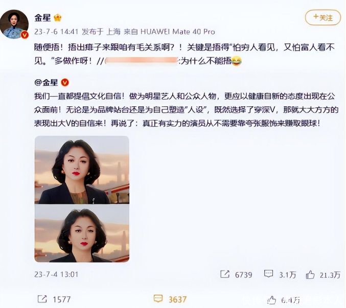 前年,金星真诚说了一句:衣服深V就别捂啊。