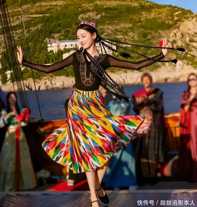 比如,在春晚上,她扮演了跳舞《舞乐新疆》。
