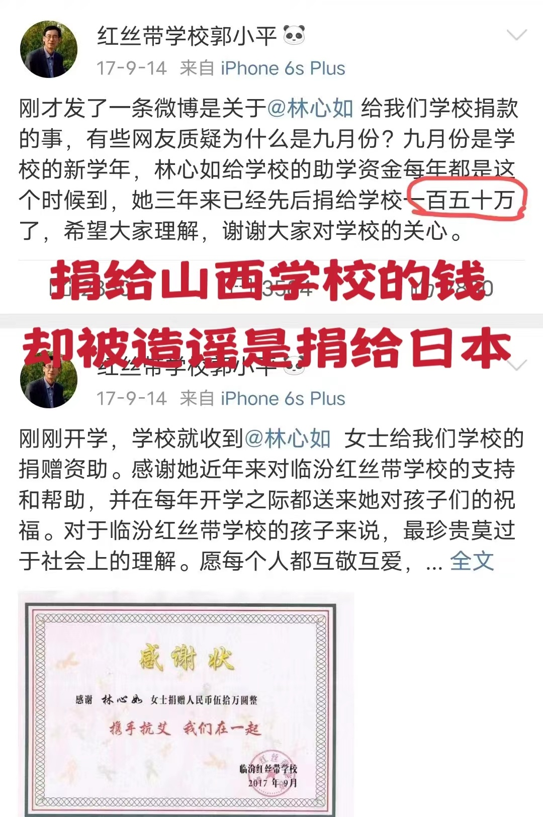 不事自后有学校的联系东说念主员出来辟谣,说林心如的钱是给了山西的学校了,也很感谢林心如的爱心捐助。